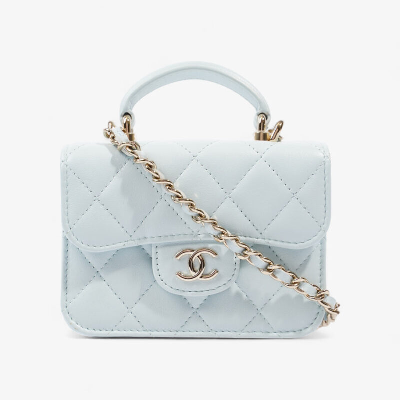 Micro Top Handle Light Blue Lambskin Leather
