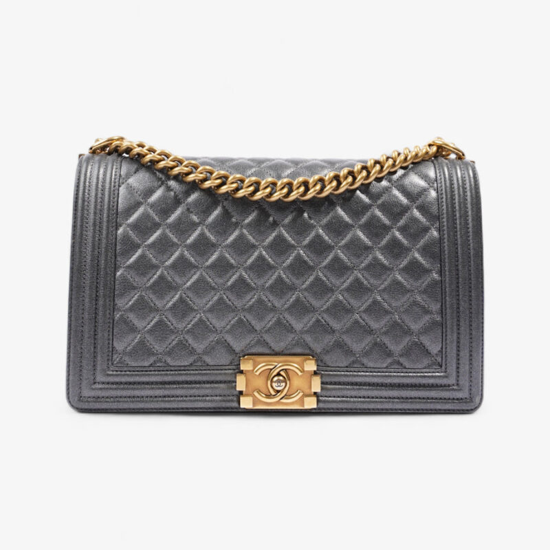 Large Boy Metallic Dark Grey Calfskin Leather