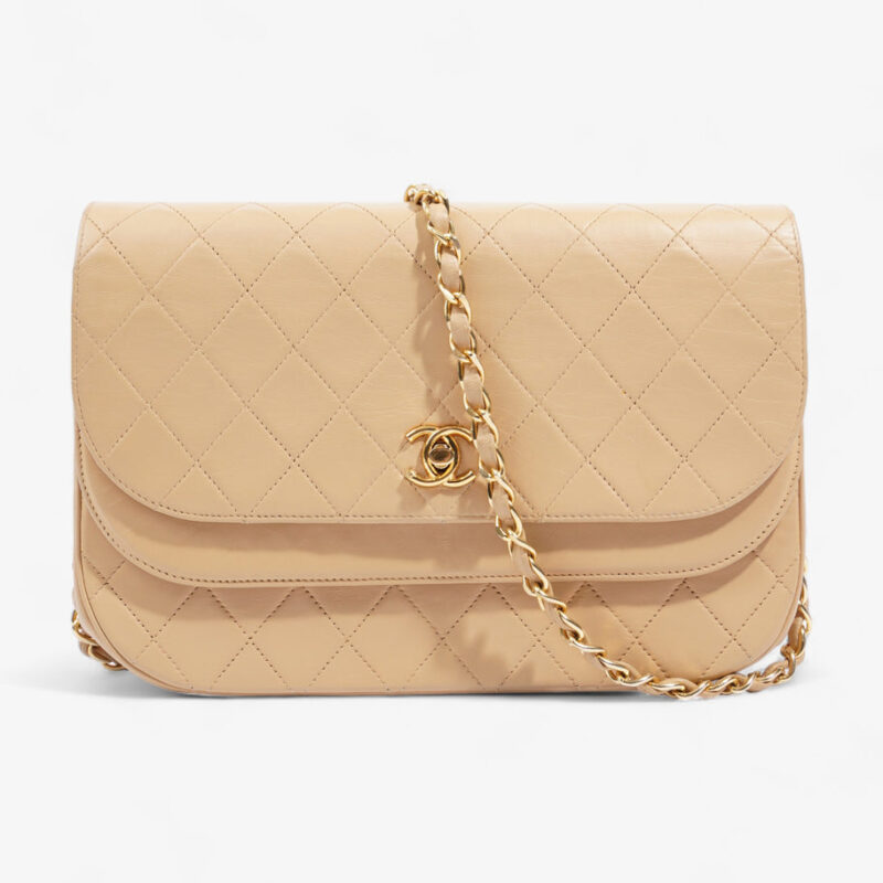 Double Flap Timeless Bag Beige Lambskin Leather
