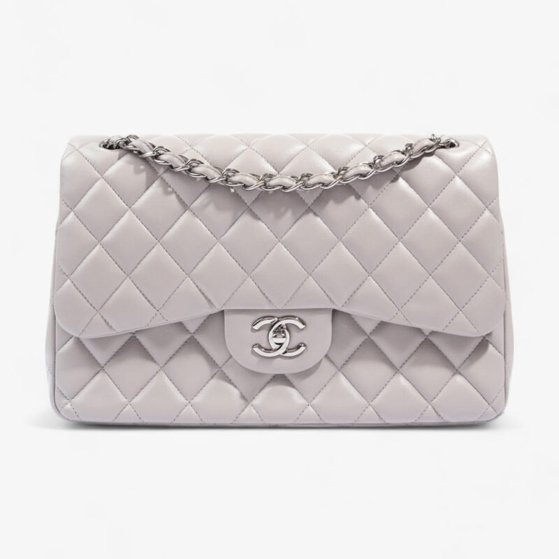 Classic Double Flap Grey Lambskin Leather Jumbo