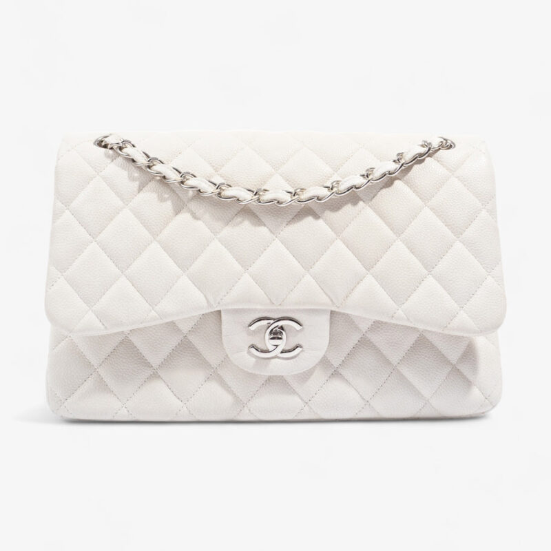 Large Classic Flap White Caviar Leather
