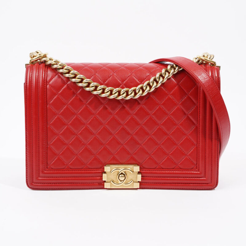 Boy Braided Fabric Flap Bag Green+ / Red Leather