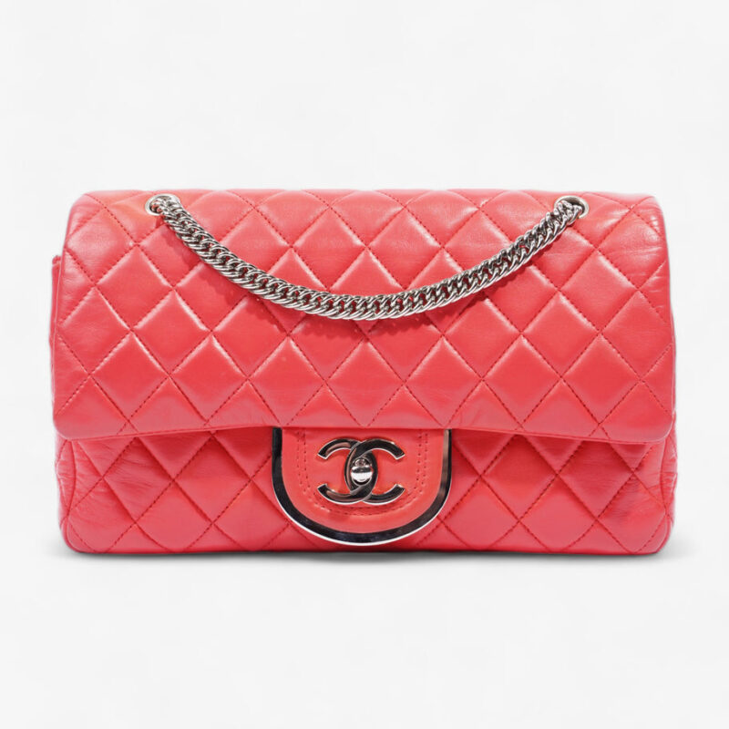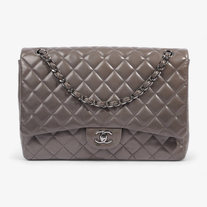 Jumbo Classic Single Flap Grey Lambskin Leather