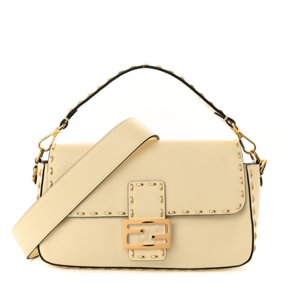 Shearling Vitello Dolce Macro FF 1974 Large Baguette Tobacco Black