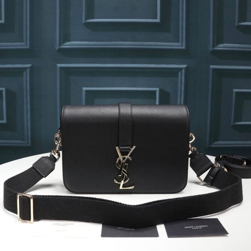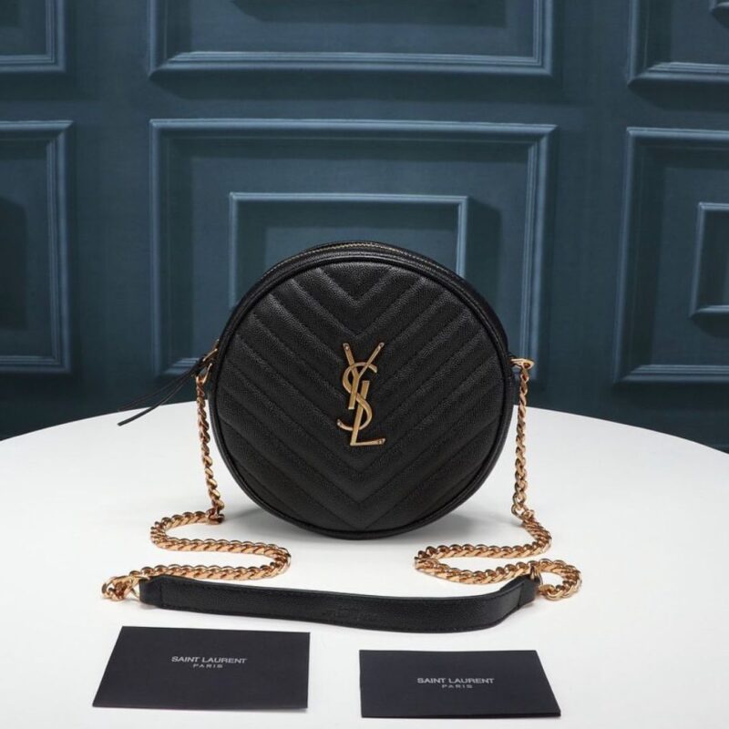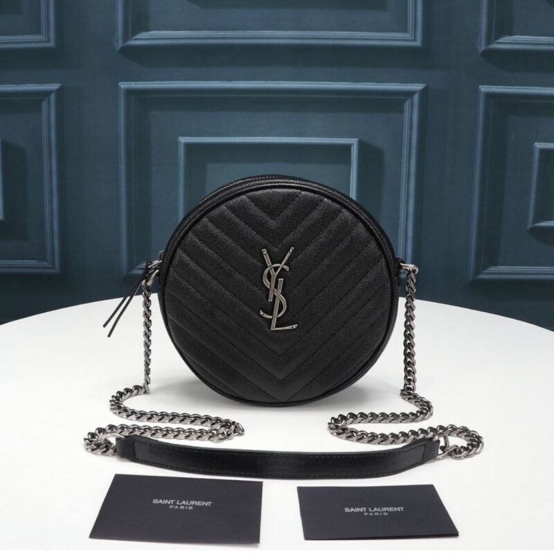 YSL CAMERA BAG VINYL ROUND IN BLACK LEATHER