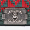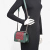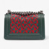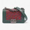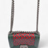 Boy Braided Fabric Flap Bag Green+ / Red Leather