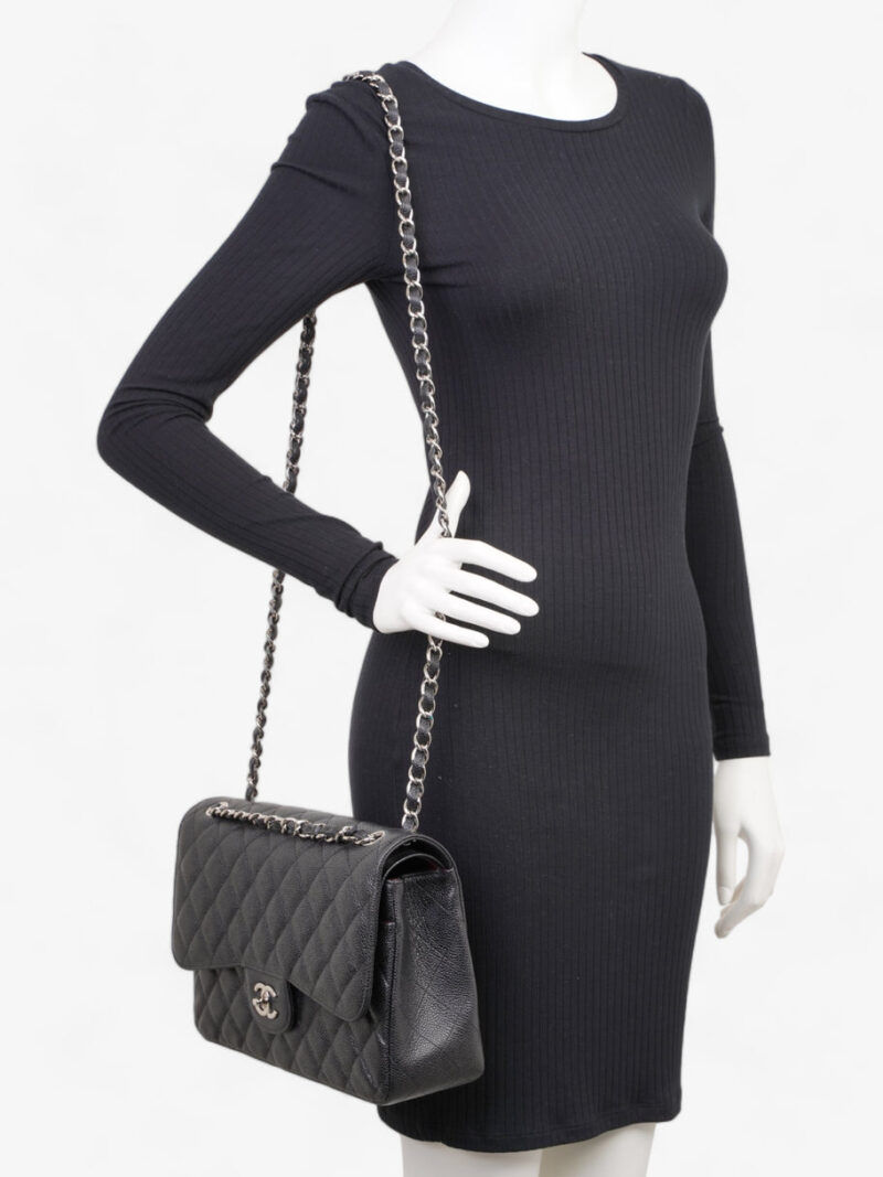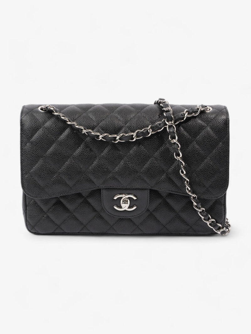 Classic Double Flap Black Caviar Leather Jumbo