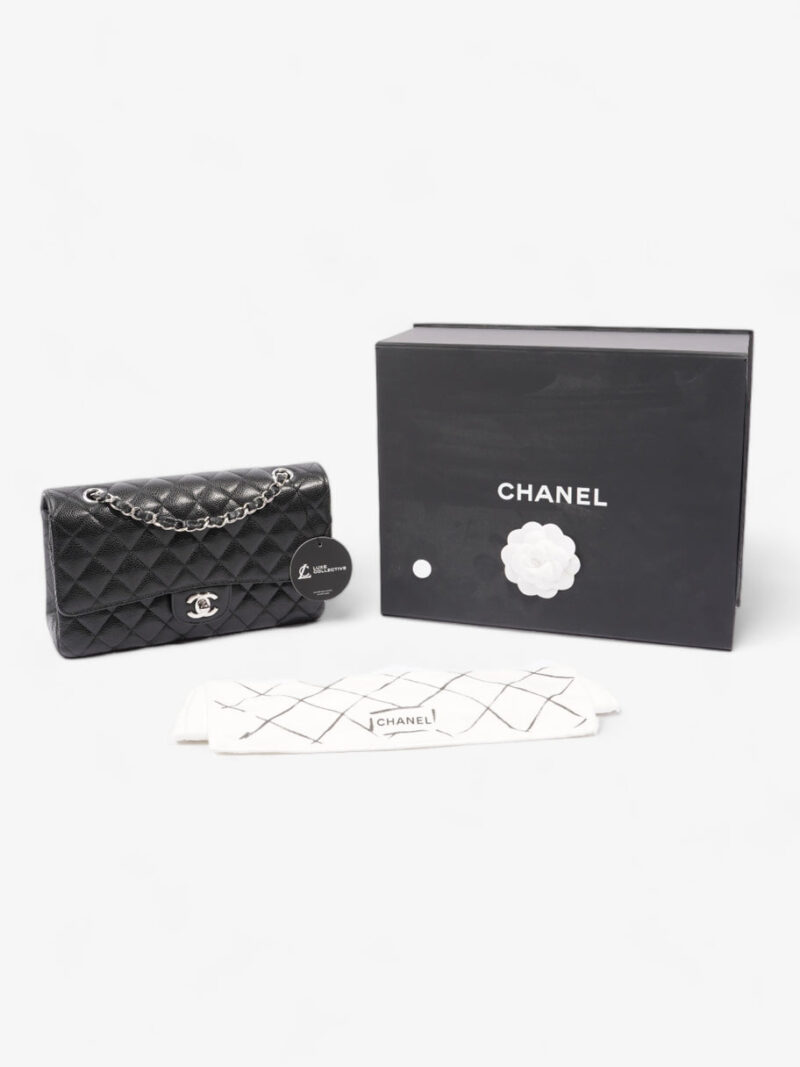 Classic Double Flap Black Caviar Leather Medium
