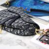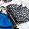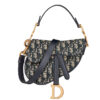 The jacquard Dior Oblique blue is embellished with small metal parts with an antique gold finish.