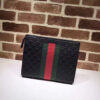 Made of GG Supreme fabric and trimmed with brown leather accents, the zippered pouch becomes part of the Ophidia line.