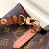 The original accessory, made of Monogram canvas, features a elegant, embellished with colored leather finishes and a coordinated coupled lining.
