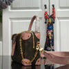 The original creation is made of padded lambskin, with an embossed Monogram motif and calfskin finishes, in white and terracotta from the tennis courts.