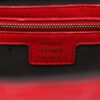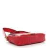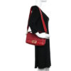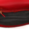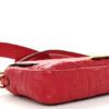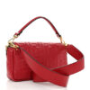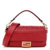 FENDI Nappa FF 1974 Embossed Baguette in Fragola. This chic baguette is crafted of Fendi monogram-embossed lambskin leather in red. The bag features a smooth leather top handle and a matching, optional shoulder strap with polished gold hardware. The crossover flap opens with a prominent magnetic gold FF logo detail to a fabric interior with a zipper pocket.