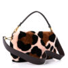 FENDI Shearling Vitello Dolce Leopard Print Large Baguette in Pink, Brown and Multicolor. This lovely shoulder bag is crafted of fine shearling wool in pink and brown. The bag features a facing polished gold Fendi FF logo. This opens the front flap to a black jacquard and leather interior.