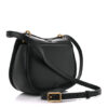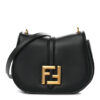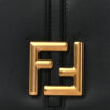 FENDI Vitello Brenta Cher Mini Fendi C’mon in Black. This bag is crafted of smooth leather in black with a gold FF logo flap. This shoulder bag features a long leather shoulder strap. The flap opens to a matching suede interior with a patch pocket.