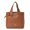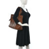 PRADA Vitello Daino Soft Dynamique Tote Cognac and Cocco. This stylish handbag is crafted of luxuriously textured calfskin leather in brown. The bag features looping leather top handles and the top opens to a brown leather interior.