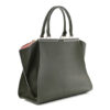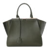 FENDI Vitello Dolce Marmol Shiny Nappa Petite 3Jours Tote in Verde Prato. This lovely tote is crafted of beautiful dark green calfskin leather. The bag features leather strap top handles with silver links, an optional cross-body shoulder strap with silver clasps, expandable sides, and a top silver frame with a hanging clochette for the lock. The top zipper opens to a pink leather interior.