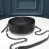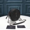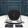 ROUND SHOULDER BAG DECORATED WITH CHEVRON QUILTED STITCHING AND METAL YSL INITIALS, CHARACTERIZED BY A LEATHER AND CHAIN SHOULDER STRAP.
