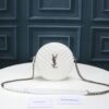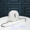 ROUND SHOULDER BAG DECORATED WITH CHEVRON QUILTED STITCHING AND METAL YSL INITIALS, CHARACTERIZED BY A LEATHER AND CHAIN SHOULDER STRAP.