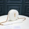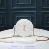 ROUND SHOULDER BAG DECORATED WITH CHEVRON QUILTED STITCHING AND METAL YSL INITIALS, CHARACTERIZED BY A LEATHER AND CHAIN SHOULDER STRAP.