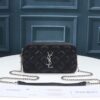 MINI MONOGRAM SAINT LAURENT BAG DECORATED WITH METAL YSL INITIALS, CHARACTERIZED BY A ZIP CLOSURE, A LEATHER TASSEL AND A LEATHER AND CHAIN SHOULDER STRAP.