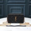 MINI MONOGRAM SAINT LAURENT BAG DECORATED WITH METAL YSL INITIALS, CHARACTERIZED BY A ZIP CLOSURE, A LEATHER TASSEL AND A LEATHER AND CHAIN SHOULDER STRAP.