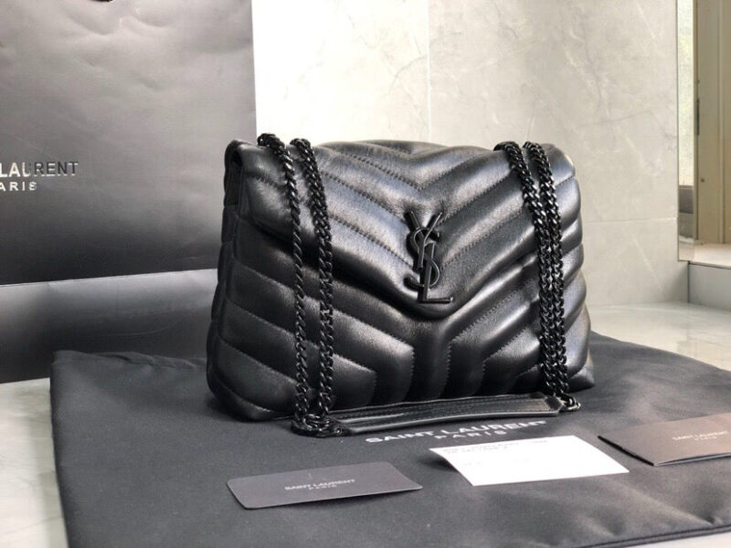 Borsa MONOGRAM SAINT LAURENT in pelle conciata senza metalli, con patta sul davanti e chiusura magnetica automatica, decorata con iniziali YSL intrecciate in metallo, tracolla in pelle e catena a impunture a quadri MATELASSÉ miste.